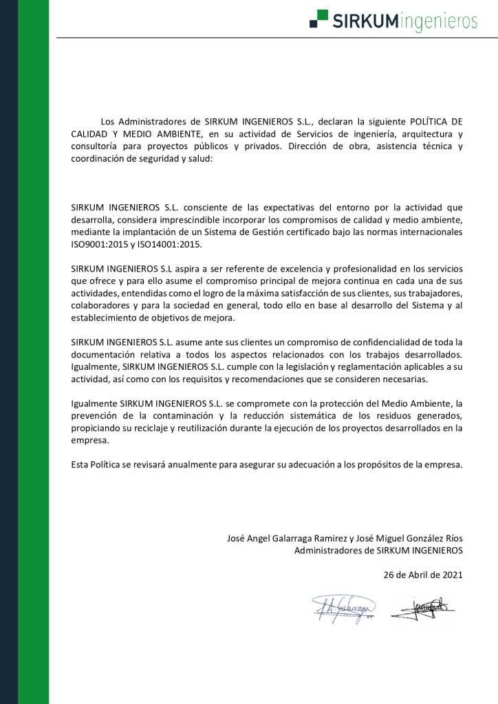 En SIRKUM, nuestro compromiso con la calidad y el medio ambiente es fundamental para el desarrollo de nuestras actividades. Implementamos un Sistema Integrado de Gestión (SIG) que garantiza la mejora continua, la satisfacción del cliente y la protección del entorno, alineado con las normas internacionales ISO 9001 e ISO 14001.